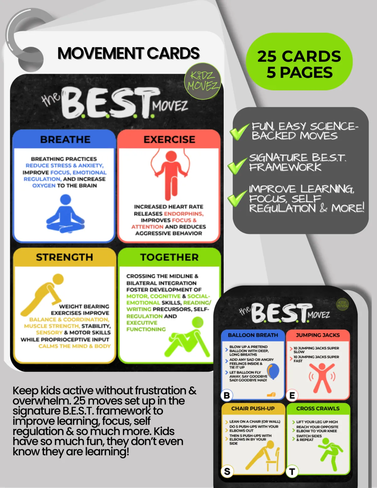 You’ve already got the fun visuals, now get the movement tools that make the BEST Framework work in real life. This is where the magic happens. The Movement Cards give you simple, fun activities in a step-by-step framework.